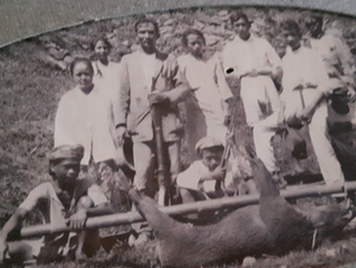 Bandoeng 1921Deze foto komt uit het familiealbum van Patty Maidman. De foto is omstreeks 1921 genomen. In Indië was de jacht een gebruikelijk onderdeel van het leven. Op de foto staan Oma Louisa Guldenaar-Kouthoofd met enkele van haar kinderen. Het meisje in het midden is Sara Guldenaar, de oma van Patty Maidman. Naast Sara staan Piet en Wim Guldenaar. Sara was op deze foto ongeveer 20 jaar oud, Piet 17 jaar en Wim 15 jaar.