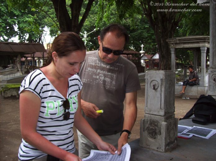 Ish en Ron Krancher aan het werk op de begraafplaats Peneleh in Soerabaja